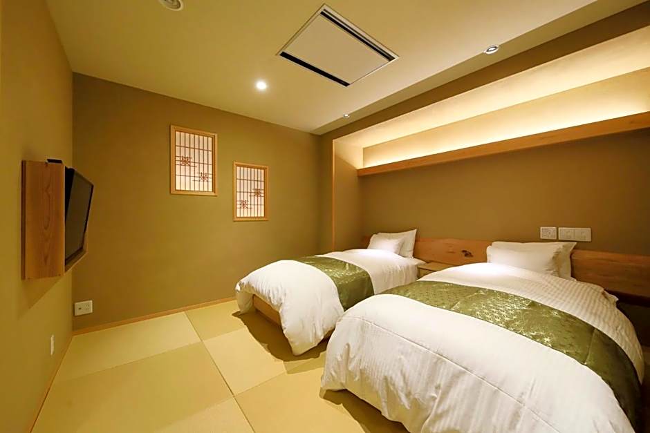 This air-conditioned room features Western beds and tatami (woven-straw) area. Includes a flat-screen TV, a fridge, an electric kettle and a safety deposit box. Comes with an private bathroom.